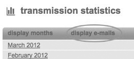 In the transmission- statistic you see the data collected from INOMAIL (Traffic, Total). Also you see, if exist, the numbers of test-sendings, clicks on the subsriber-link and the number of subscribers who have completed the optin-confirmation. Next to the view 'display months' you also can select 'display e-mails'. So INOMAIL outputs the above mentioned figures for each mailing.