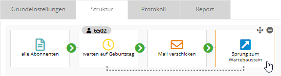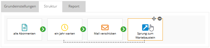 Der Sprungbaustein steht am Ende der Kampagne, wenn der Abonnent wieder zurück zu einem anderen Baustein springen soll.